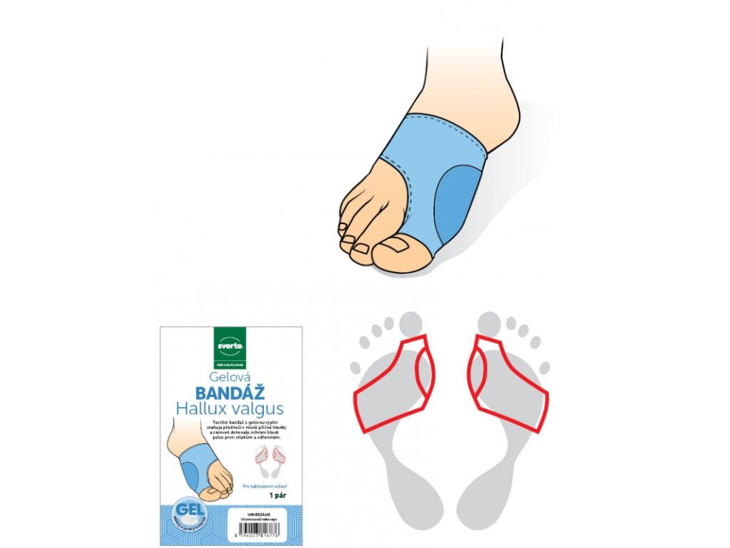 Textilní bandáž s gelovou výplní stahuje přednoží v místě příčné klenby a zároveň dokonale chrání kloub palce proti otlakům a odřeninám. Bandáž řeší hallux valgus - vbočený palec / křivé prsty / prevence vzniku otlaků a puchýřů.