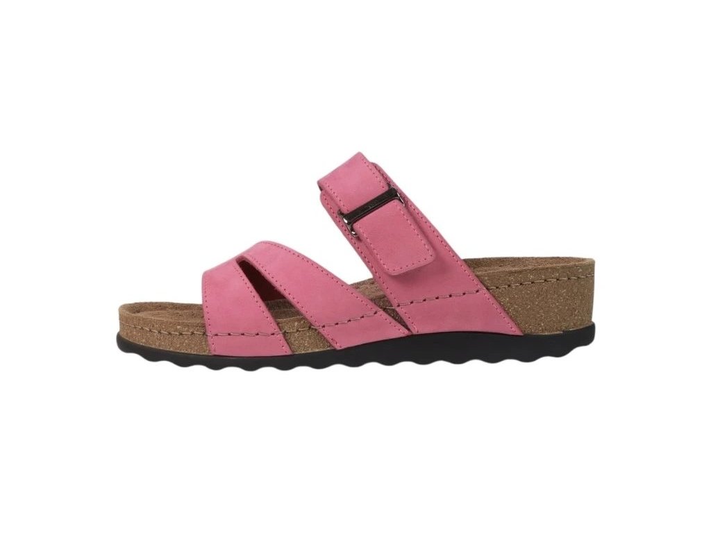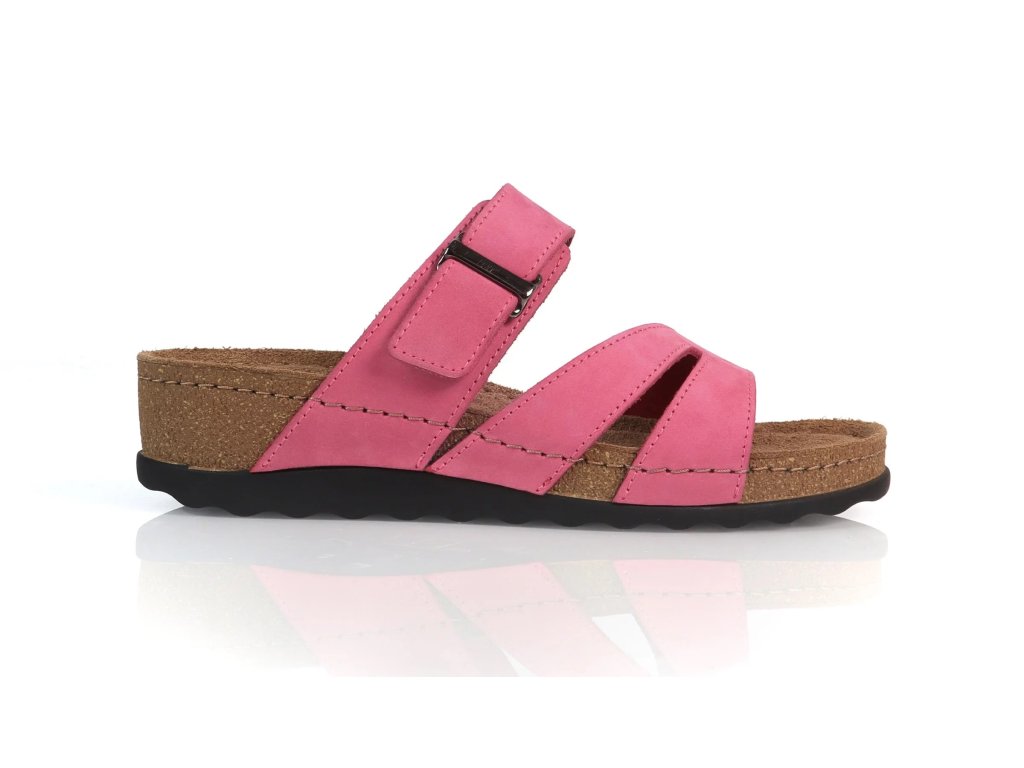 Elegantní růžový odstín vyzařuje svěžest a ženskost. Anatomické tvarování a zvýšená patní část obuvi poskytují extra komfort při každém kroku. Hedvábně jemný nubukový kožený svršek je příjemný na dotek a zaručuje dlouhou životnost, zatímco podrážka s korkovým efektem dodává lehkost a přirozený vzhled. Díky nastavitelnému pásku se model dokonale přizpůsobí tvaru chodidla.