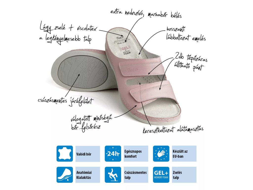 Pocit pohodlí je klíčový, a právě to nabízejí dámské pantofle Batz Rea. Měkký gelový polštářek v oblasti paty a vrstva paměťové pěny pod celou plochou podrážky zajišťují, že vaše nohy budou pohodlné po celý den. Anatomicky navržená struktura podrážky poskytuje optimální podporu pro vaše chodidla, což je ideální pro dlouhé hodiny stání. Kvalitní kůže a precizní zpracování jsou zárukou odolnosti a dlouhé životnosti tohoto modelu.