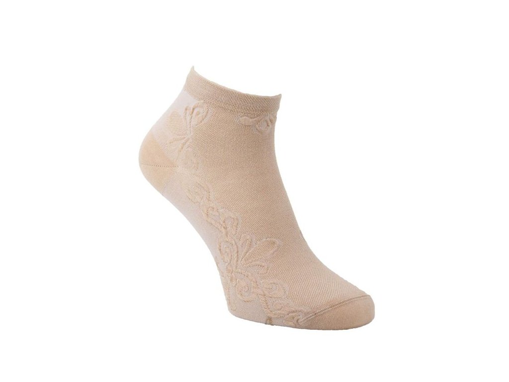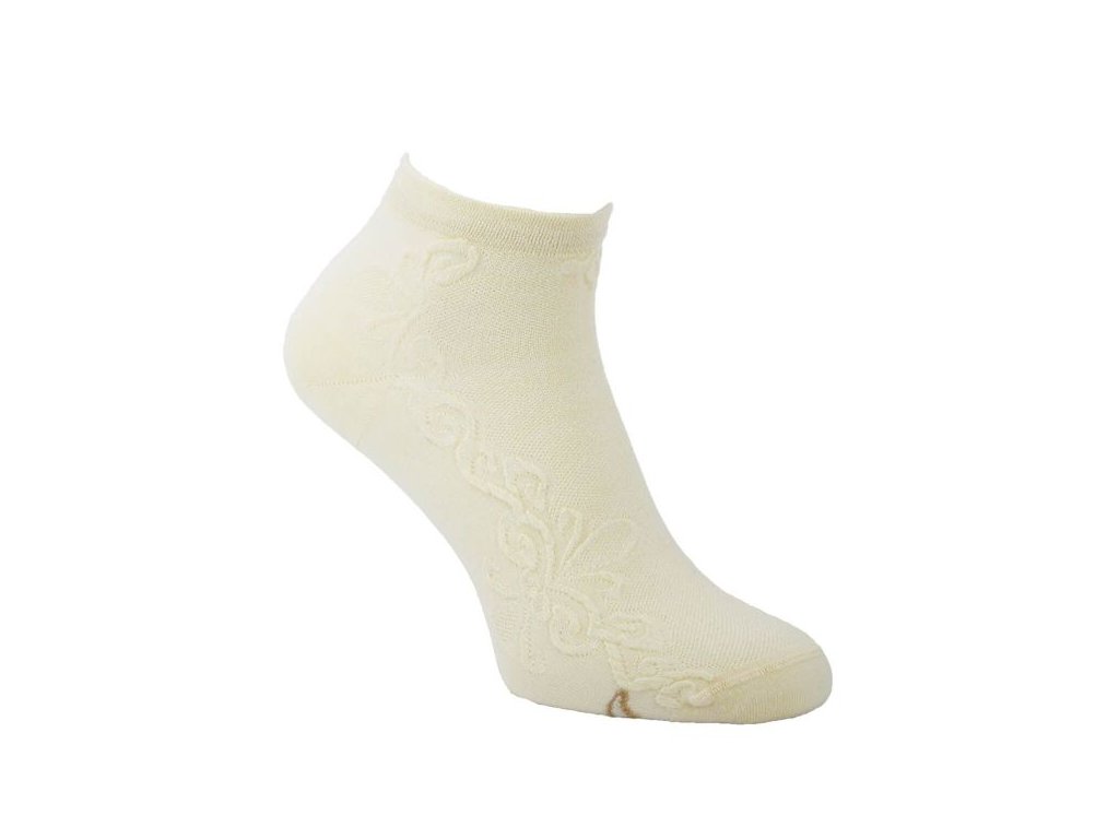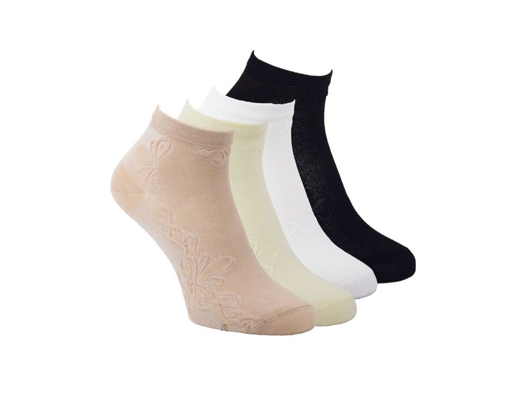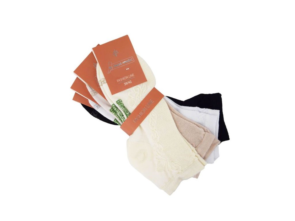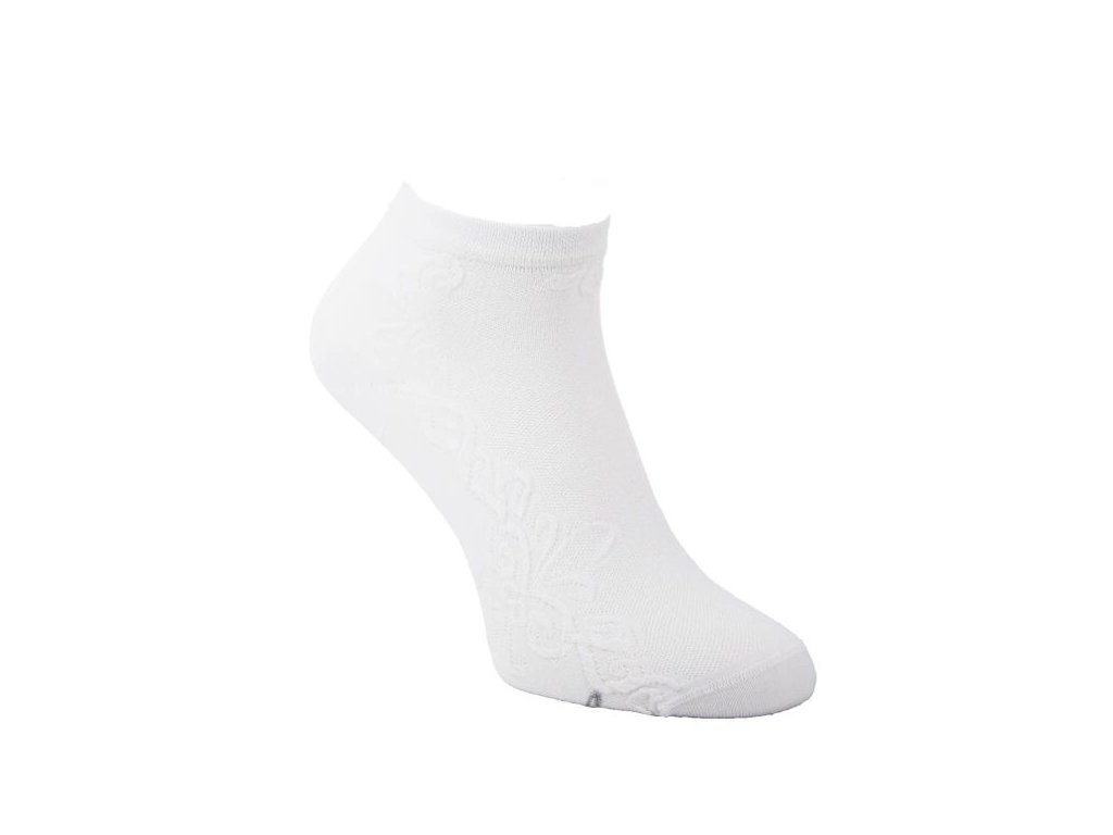 Dámské bambusové jednobarevné elastické letní kotníkové krajkové vzorované ponožky. Pohodlí zajistí plochý šev na špici (řetízkování) a trvanlivost ponožek pak zesílení (zdvojené pletení) v oblasti paty a špice. RS letní krajkové ponožky se příjemně nosí a nesjíždí. Skvěle drží díky své elasticitě a neškrtí díky pohodlnému lemu