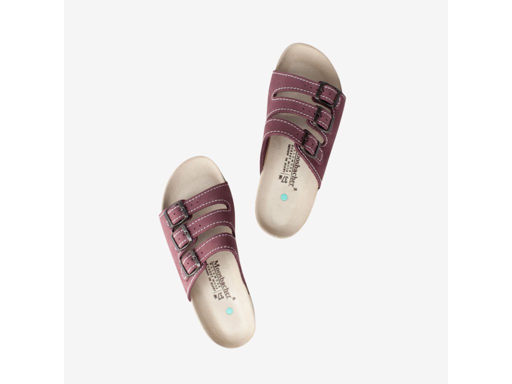Dámská pantoflová obuv na klínové podešvi s koženým svrškem a patentovanou stélkou Moosbacher® s pravým přírodním mechem. Anatomicky tvarovaná stélka z korku a latexu umožňuje volnost pohybu, podporuje nožní klenbu a zaručuje jedinečné pohodlí při nošení.