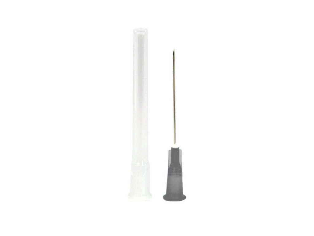 Sterilní injekční jehla ke stříkačkám pro aplikaci roztoků a oběry krve. 100 ks v balení; barva ústí černá; průměr 0,7mm; délka 40mm; velmi ostrá; lubrikovaná silikonem pro snadnější průnik jehly; rychlé barevné rozlišení průměru jehly; jednotlivé sterilní balení.