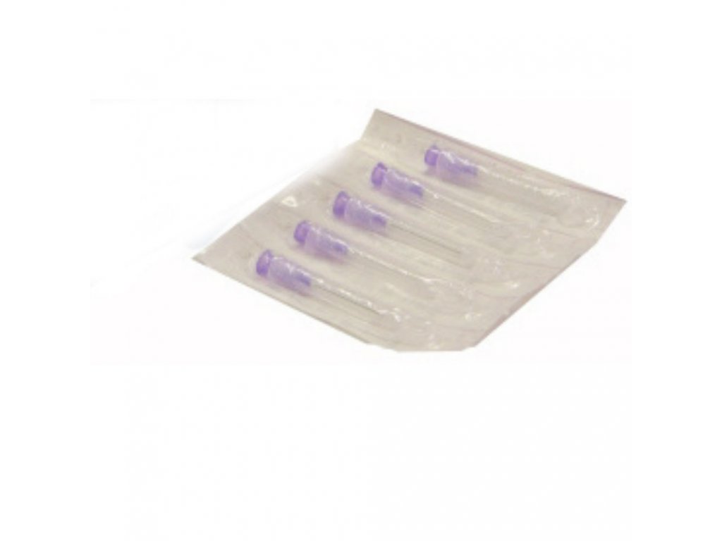 Sterilní injekční jehla ke stříkačkám pro aplikaci roztoků a oběry krve. 100 ks v balení; barva ústí fialová; průměr 0,55mm; délka 25mm; velmi ostrá; lubrikovaná silikonem pro snadnější průnik jehly; rychlé barevné rozlišení průměru jehly; jednotlivé sterilní balení.
