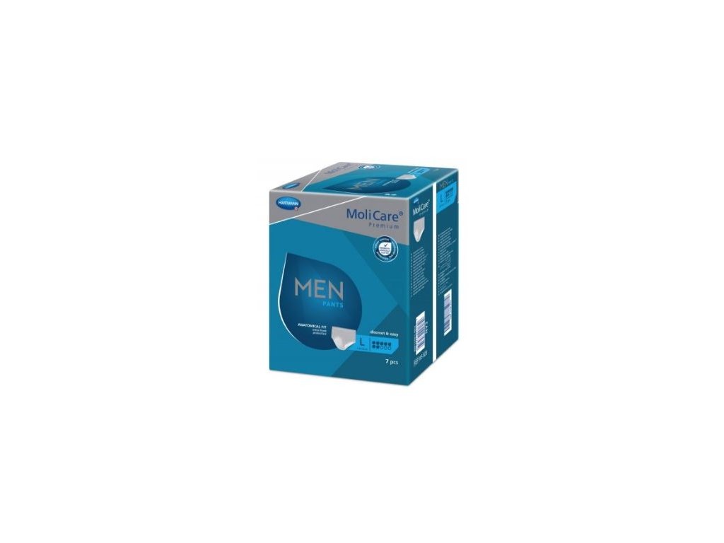 Inkontinenční spodní prádlo MoliCare Men Pants 5 kapek je určeno pro muže s inkontinencí, se středním až těžkým únikem moči. Jsou speciálně anatomicky tvarované vyloženě pro muže, v diskrétní šedé barvě. Unikající moč velmi rychle pohltí a zabrání tak jejímu proniknutí zpět na povrch tím, že ji přemění v gel, který pevně uzamkne uvnitř. Všechny MoliCare pomůcky jsou vyráběny z netkané textilie, která je prodyšná a nezapařuje pokožku. Pohlcují zápach díky aktivním molekulám Odour Neutralizer a nenechají ho proniknout zpět.