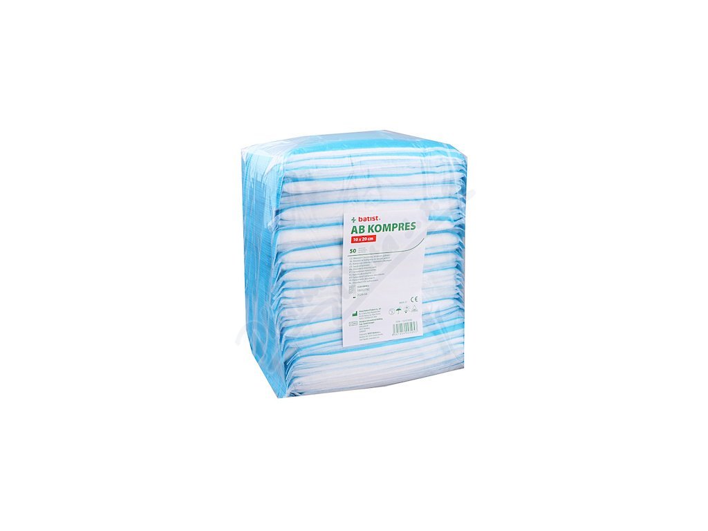 Absorpční kompresy mají vysokou savost a jejich vnější vrstva je ze zdvojeného netkaného textilu. Modrá strana indikuje vnější stranu krytí. Balení obsahuje 50 ks nesterilních kompresů o rozměrech 10 x 20 cm.