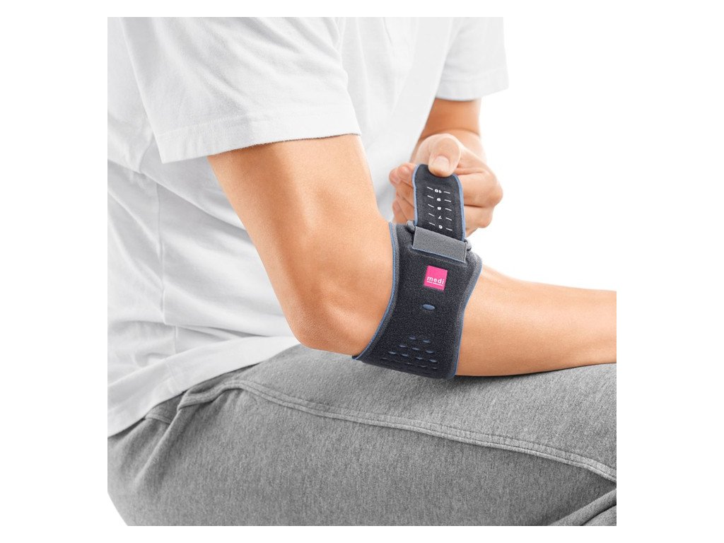 Epikondylární páska s přestavitelnou silikonovou pelotou. Individuální přizpůsobení tlaku se dosahuje elastickou regulační páskou. Epibrace je možné nosit ne levé i pravé ruce. Měkká pelota umožňuje optimální kompresi. Epibrace se vyrábí v jedné velikosti na pravou i levou ruku.