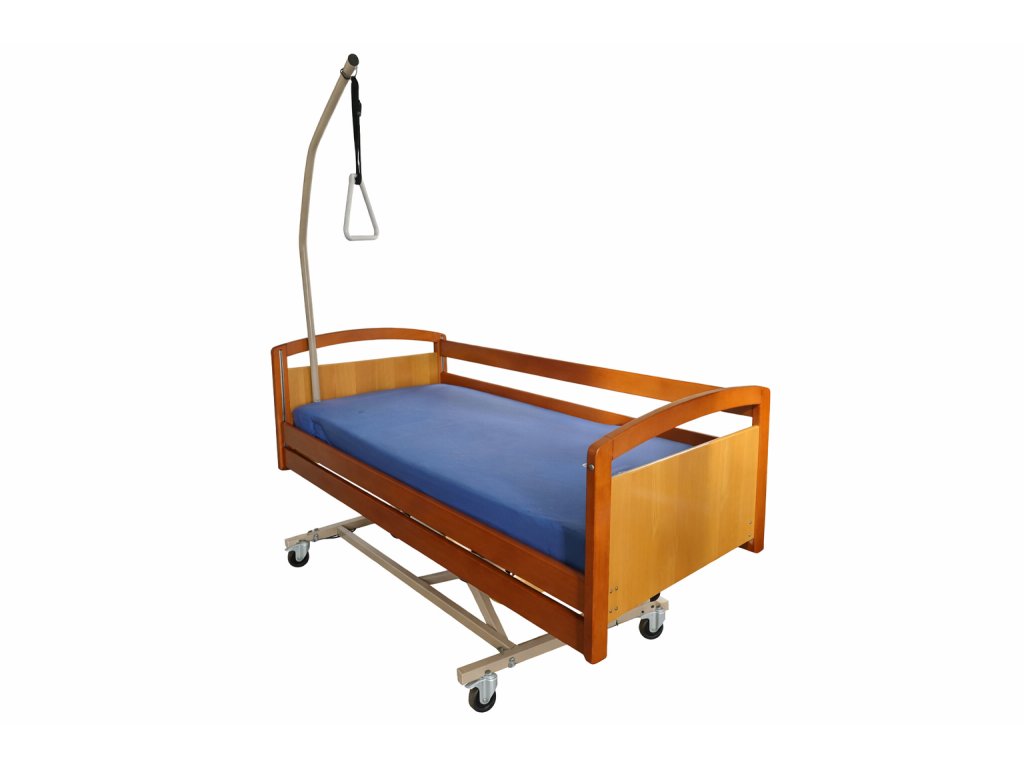 Pojízdné elektricky výškově stavitelné (cca. 40-80cm) lůžko s elektricky polohovatelným roštem včetně nohou (dřevěné lamely). Lůžko je opatřeno dřevěnými postranicemi. Lůžko je možno dodat s repasovanou antidekubitní matrací (s bavlněným potahem) zdarma. 2 roky záruka.
