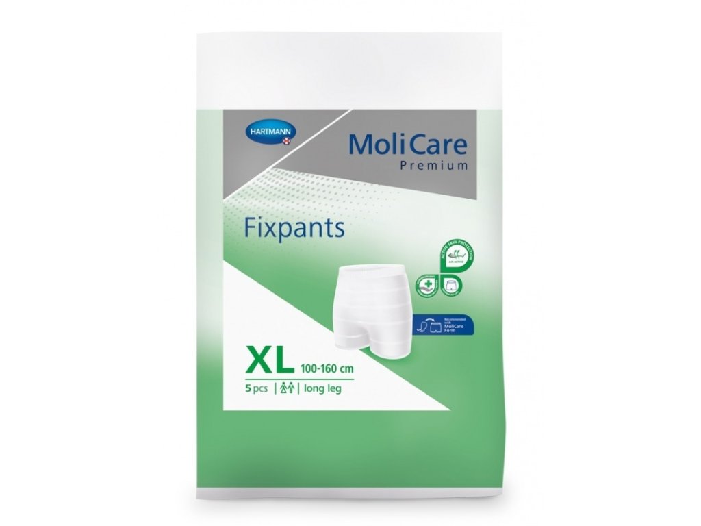 Fixační inkontinenční kalhotky MoliCare Premium FIXPANTS jsou vhodné pro ležící i mobilní osoby. Spolehlivě drží absorpční pomůcky na svém místě. MoliCare Premium FIXPANTS patří do řady pomůcek použitelných při inkontinenci, MoliCare FIXPANTS síťované pak obzvláště po porodu.