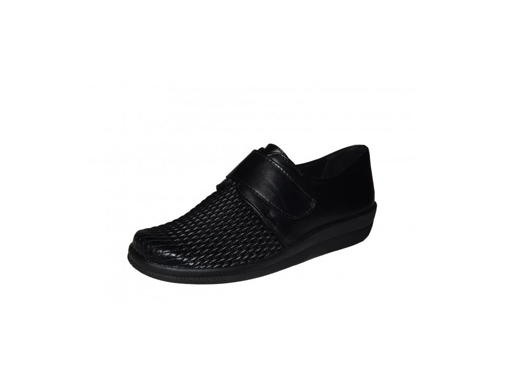 Dámská zdravotní obuv je na lehké flexibilní podešvi, svršek je v přední části elastický. Velice dobře se přizpůsobí tvaru nohou a proto jsou vhodné i pro Hallux - vbočený palec. Obuv se zapíná páskem na suchý zip, čímž se dobře přizpůsobí výšce nártu. Podešev je na mírném klínku, stélka je anatomicky tvarovaná s koženým povrchem. Lze ji vyndat a nahradit ji stélkou dle vlastní potřeby.