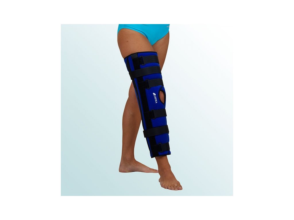 Ortéza nahrazuje sádrovou fixaci bérce, kolene a distální části stehna. Fixace je v extenzi kolenního kloubu. Je vyrobena z textilního materiálu sendvičového typu. Tři duralové dlahy pevně zasazené v textilní části ortézy zaručují pevnost a stabilitu výrobku. Ortéza je složena ze tří textilních dílů, které jsou podélně spojeny suchými zipy a po odepnutí bočních dílů lze snadno regulovat objem ortézy individuálně dle objemu končetiny.