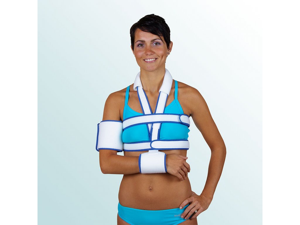 Ortéza se skládá ze dvou částí. První část má 2 díly – hrudní a pažní objímku. Druhá část má dva díly – jeden delší je určen k zavěšení kolem krku a druhý s přezkou je určen k zavěšení předloktí. Způsob zavěšení paže zajišťuje větší odlehčení ramenního kloubu. Další výhodou ortézy je velká vzdušnost, dobrý přístup k event. kožním ranám v oblasti pletence ramenního.