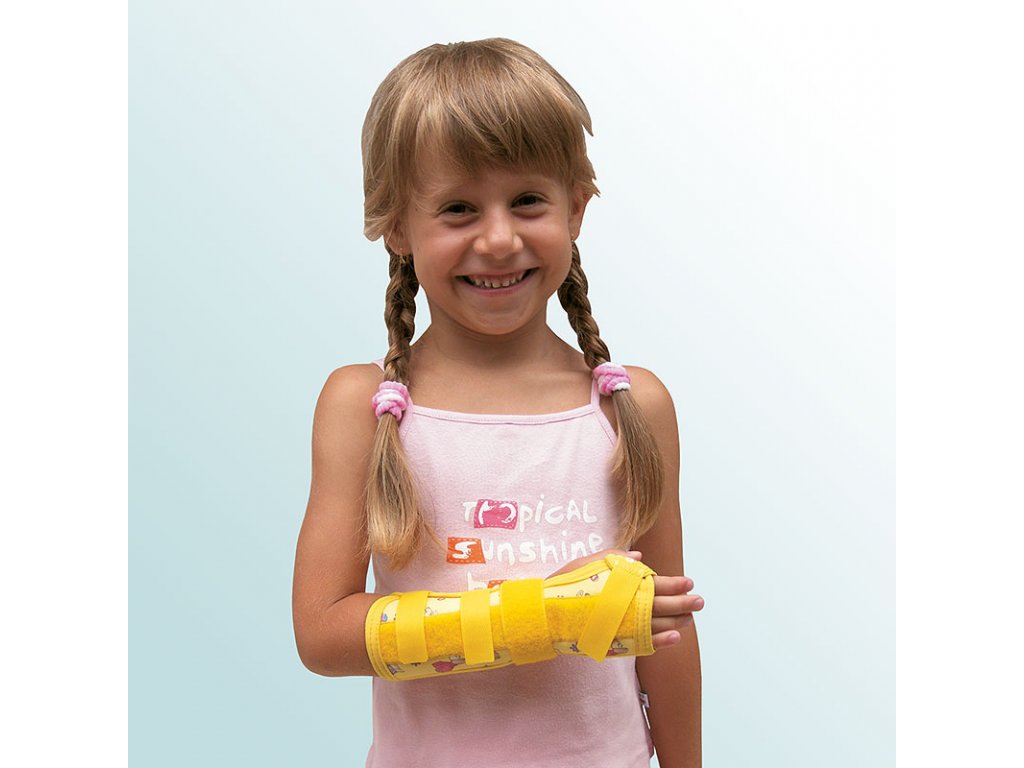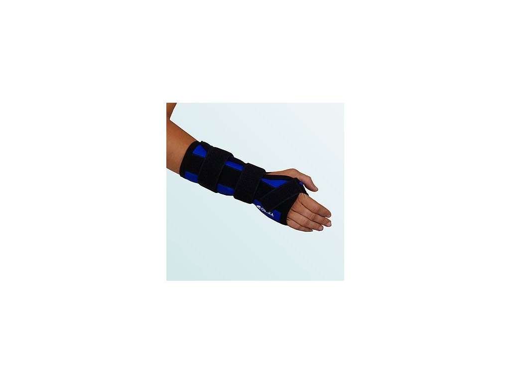 Ortéza k fixaci zápěstí, duralová dlaha je zapravena v textilním pouzdru, je možno ji vyjmout a dle potřeby tvarovat. Ortéza dobře obepíná zápěstí a zajišťuje vysoký užitný komfort.