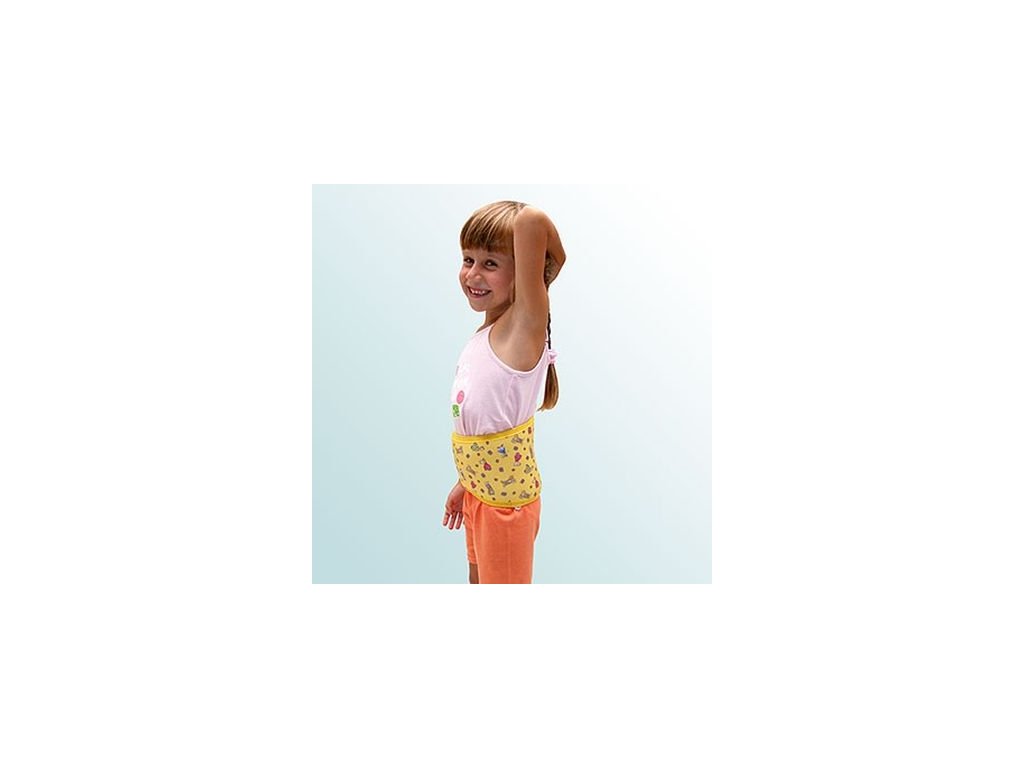 Jedná se o elastický pás vyrobený z neoprenu, který má v bederní části výšku 250 mm, v břišní části se zužuje na 125 mm a je opatřen suchým zipem k zapnutí.