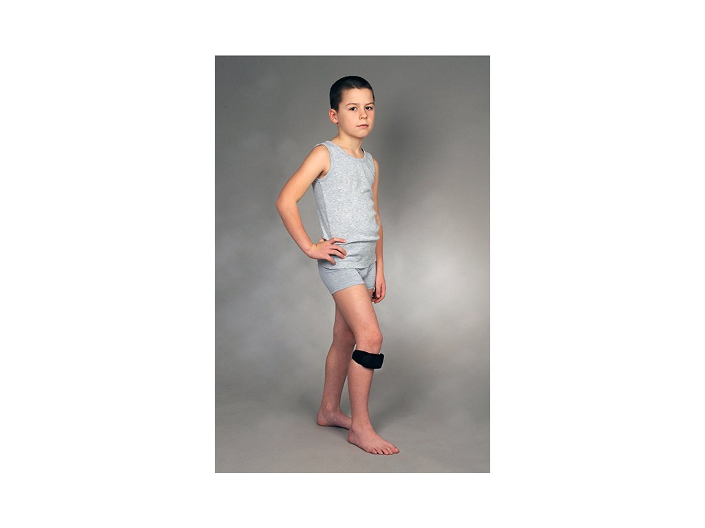 Pomůcka je zhotovena z textilních materiálů doplněných suchými zipy sloužícími k upnutí a utažení infrapatelární pásky.Užití: