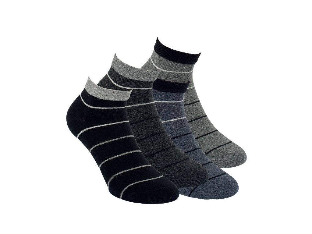 Pánské bavlněné zdravotní volnočasové kotníkové melírované ponožky s příjemným lemem. Pohodlí zajišťuje plochý šev na špici (řetízkování) a trvanlivost ponožek pak zesílení (zdvojené pletení) v oblasti paty a špice. HARMONY zkrácené bavlněné ponožky se vzorem se příjemně nosí a nesjíždí. Dobře se navlékaji, drží díky své elasticitě a neškrtí díky pohodlnému nesvíravému lemu.