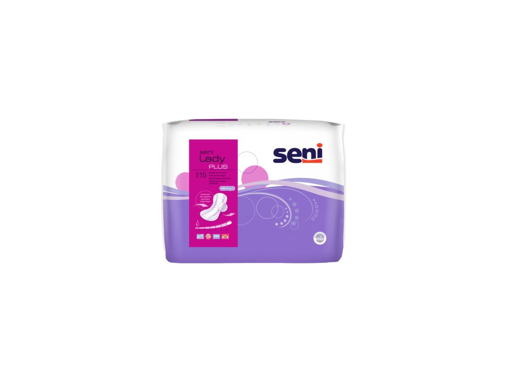 Prodyšné anatomicky tvarované urologické vložky Seni Lady Plus zabezpečují vysoký uživatelský komfort i při vyšším úniku moči. Savost urologických vložek Seni Lady Plus je mnohanásobně vyšší než u vložek klasických díky použití superabsorbentu, který váže tekutinu a neutralizuje nepříjemný zápach a zajišťují tak ženě naprosté bezpečí při úniku moči. Urologické vložky Seni Lady Plus jsou speciálně tvarované, mají vnitřní hydrofobní volánky, které zvyšují ochranu při větším úniku moči, v bočních částech jsou dodatečně opatřeny elastickou přízí