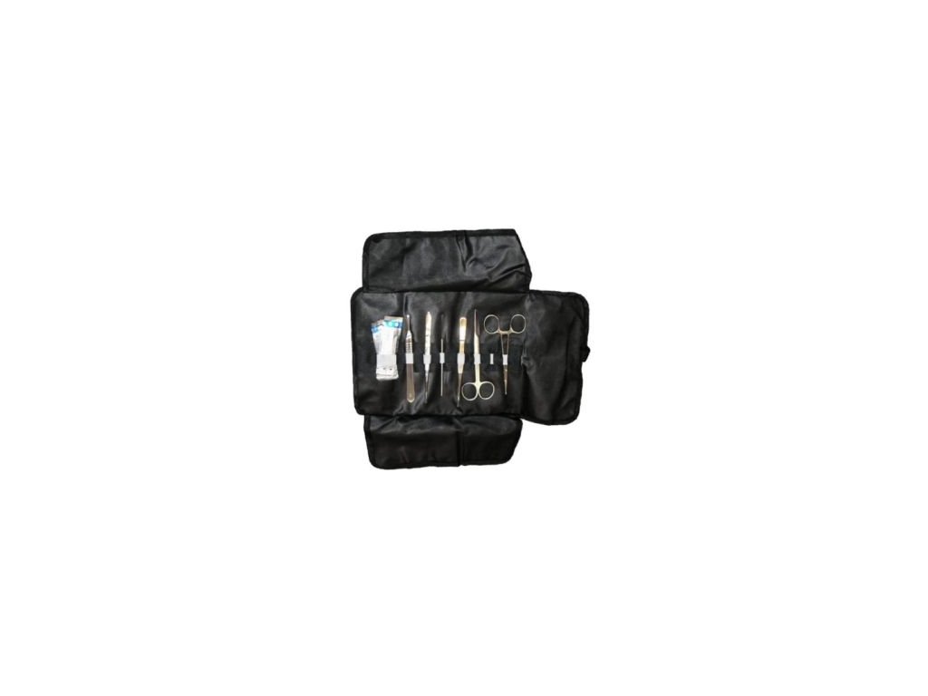 Kvalitní nástroj pro lékařskou praxi. Vhodný set pro začínající mediky. Set obsahuje preparační jehlu, chirurgické nůžky, držátko skalpelových čepelek, čepelky, pinzety a peány. Výrobce si vyhrazuje právo drobných změn v obsahu balení.
