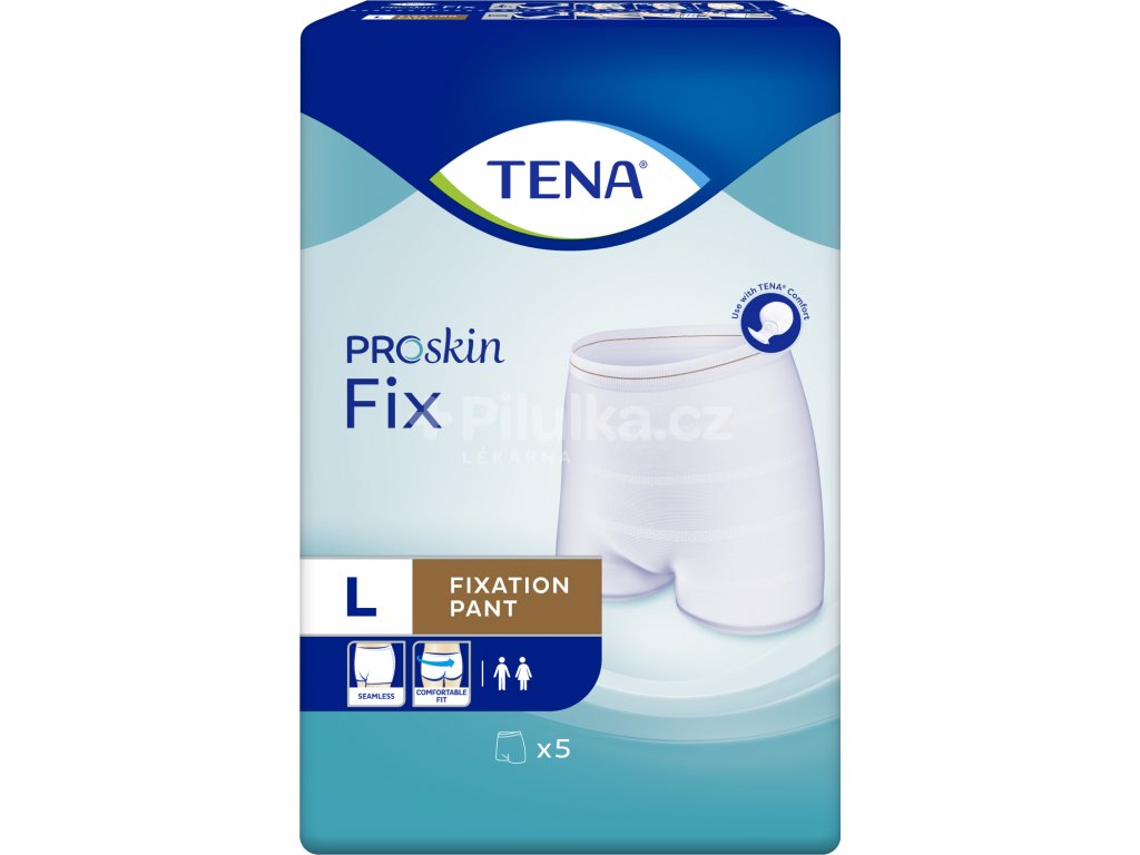 Elastické fixační kalhotky TENA Fix se používají k bezpečné fixaci vložných plen TENA Comfort. Je možné je opakovaně prát. Měkké, pružné okraje a materiál bez obsahu latexu zaručují pohodlí. Kalhotky lze opakovaně prát, aniž by ztratily svůj tvar. Vhodné pro muže i ženy. Velikosti S (kód VZP 85856); M (kód VZP 85857), L (kód VZP 85858), XL (kód VZP 85859)