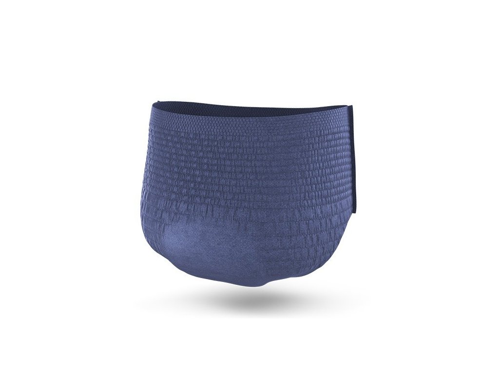 Tmavě modré inkontinenční spodní prádlo TENA Men Pants pro muže se středním až těžkým únikem moči. Vypadá jako spodní prádlo, chrání jako TENA.