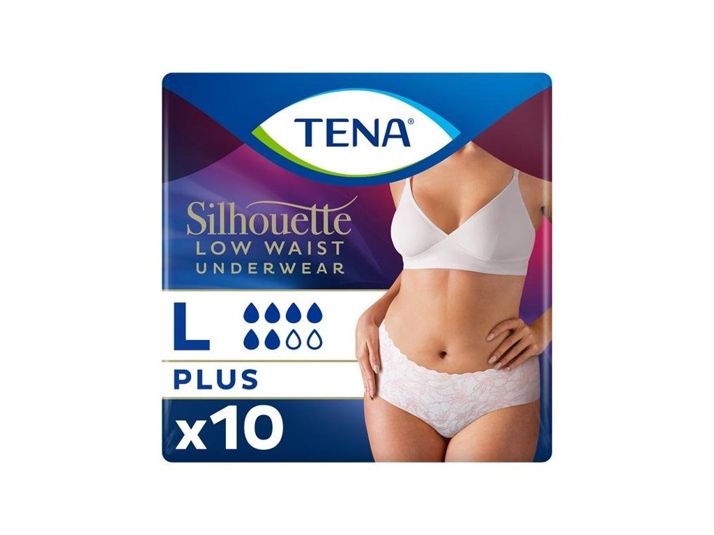 Elegantní, diskrétní absorpční kalhotky pro ženy. Kalhotky TENA Silhouette Plus se sníženým pasem poskytují kompletní ochranu při střední až těžké ochablosti močového měchýře. Jsou ideální pro ženy po porodu.