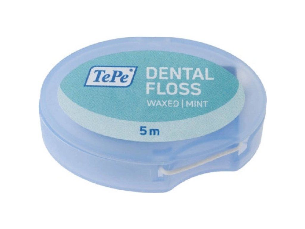 TePe Dental Floss, expandující voskovaná zubní nit s mátovou příchutí, 5 m - nit zvětšuje svůj objem ve vlhkém prostředí, a proto důkladně a efektivně vyčistí veškeré mezizubní prostory - potažena rostlinným voskem a avokádovým olejem pro snadný přístup do mezizubních prostorů bez třepení - svěží mátová příchuť - vyrobena z recyklovaných plastových lahví pro snížení dopadu na životní prostředí Pro udržení zdravých zubů a dásní se doporučuje každodenní používání. Zubní nit TePe Dental Floss byla vyvinuta na základě úzké spolupráce se zubními lékaři.
