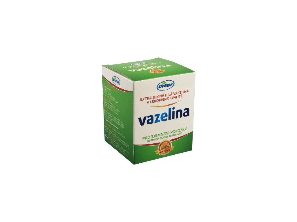 Vitar Vazelina extra jemná bílá v lékopisné kvalitě je určena pro zjemnění pokožky. Je neparfémovaná, pokožku nedráždí a je tedy vhodná i pro citlivou dětskou pokožku. Tento přípravek účinně chrání tvář a ruce před mrazem, před škodlivými vlivy prostředí, při práci s mastnotou a při pobytu v bazénu či sauně. Napomáhá také ošetřit pokožku při odření či menším popálení, dále suchá a popraskaná místa na pokožce. Má též čistící účinek (odstraňuje například make-up). Tato vazelina byla dermatologicky testována. Balení obsahuje 110 g přípravku.